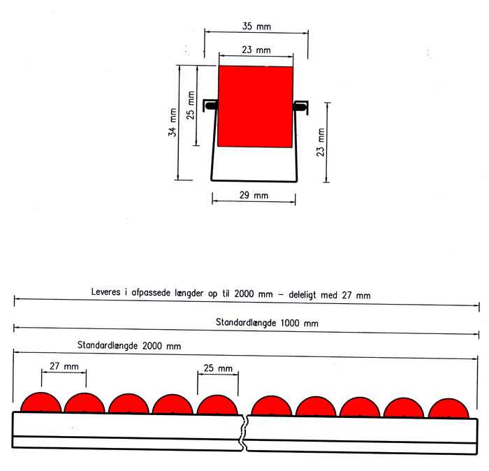 Er lette at afkorte. Kan leveres i tilpassede længder op til 2000 mm, deleligt med 27 mm. |