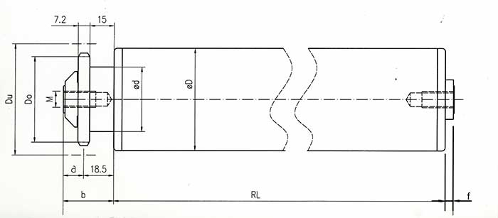 Dreven transportrulle Med enkelt stålkædehjul for1/2" x 5/16" kæde. Her vist med indvendigt gevind i akslen.
