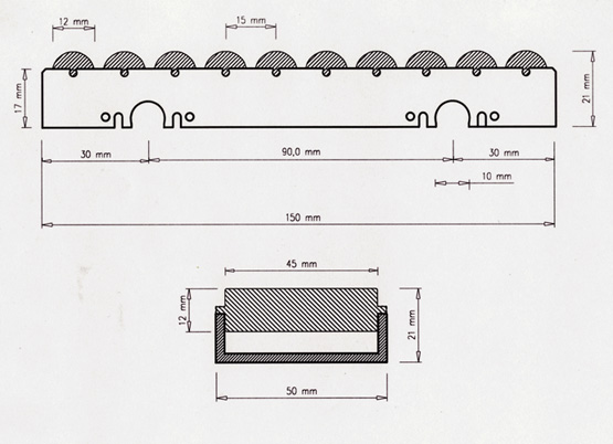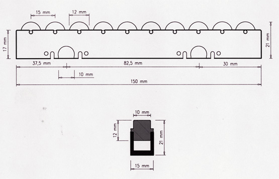 Føres i de viste skinnelængder (150 mm) Rullelængde 10 mm Max. last pr. hjul 0,5 kg.