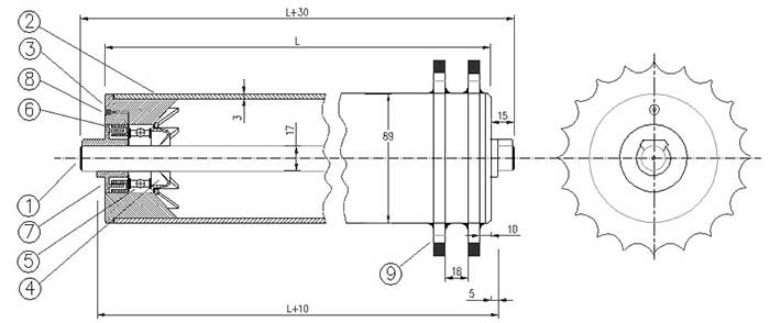 Pladekædehjul ø89 - A17 - Tegning nr. 28.089.017.2755