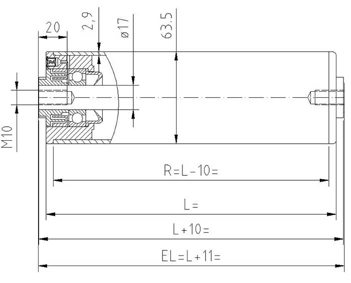 Aksel ø17 mm med indvendigt gevind M10