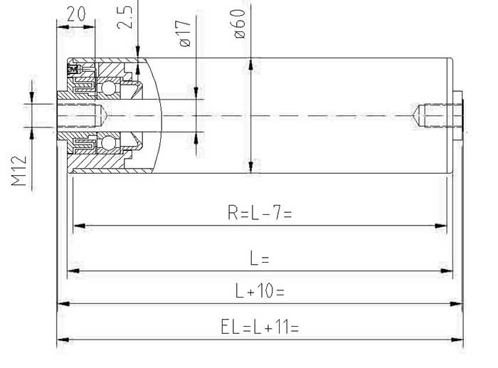 Aksel ø17 mm med indvendigt gevind M12
