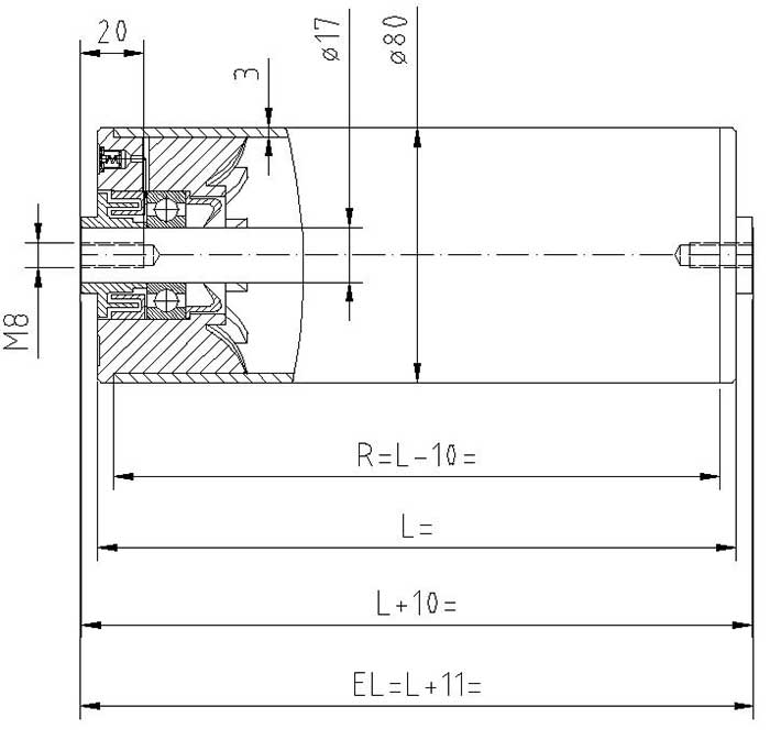 Aksel ø17 mm med indvendigt gevind M8